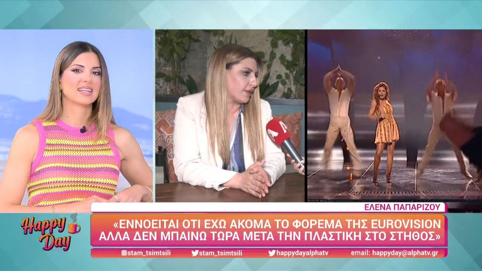 Στην κάμερα της εκπομπής Happy Day μίλησε το πρωί της Παρασκευής (20/5) η Έλενα Παπαρίζου με αφορμή την έναρξη των συναυλιών της καλοκαιρινής της περιοδείας.