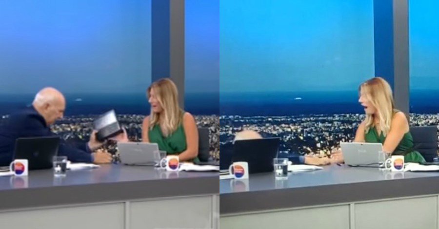 Συγκεκριμένα, ενώ χαιρετούσε τους καλεσμένους και διαφήμιζε τα δώρα της εκπομπής του, κάποια στιγμή έπεσε από την καρέκλα. Ο ίδιος αργότερα ανέφερε πως πρόκειται για ατύχημα και το διακωμώδησε. Στο πάνελ επικράτησε πανικός με τη συνεργάτιδά του να σπεύδει να τον σηκώσει.