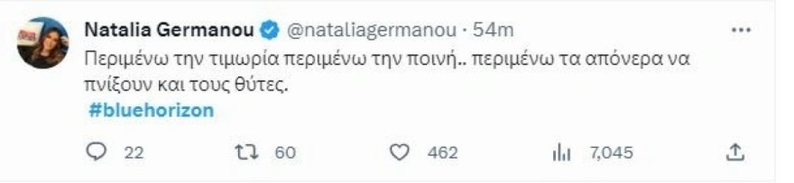 «Περιμένω τα απόνερα να πνίξουν και τους θύτες» – Η οργισμένη ανάρτηση της Ναταλίας Γερμανού