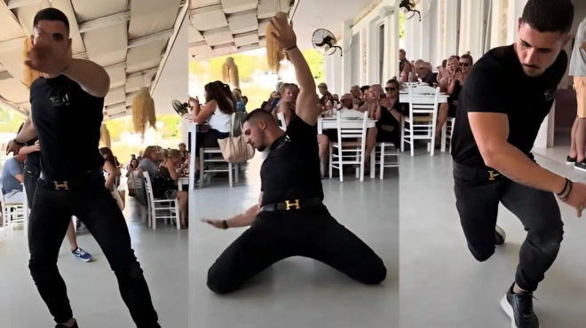 Σηκώνεται λοιπόν ξαφνικά και κάνει όλη την ταβέρνα να τον χειροκροτά και να τον αποθεώνει με τις χορευτικές του ικανότητες.