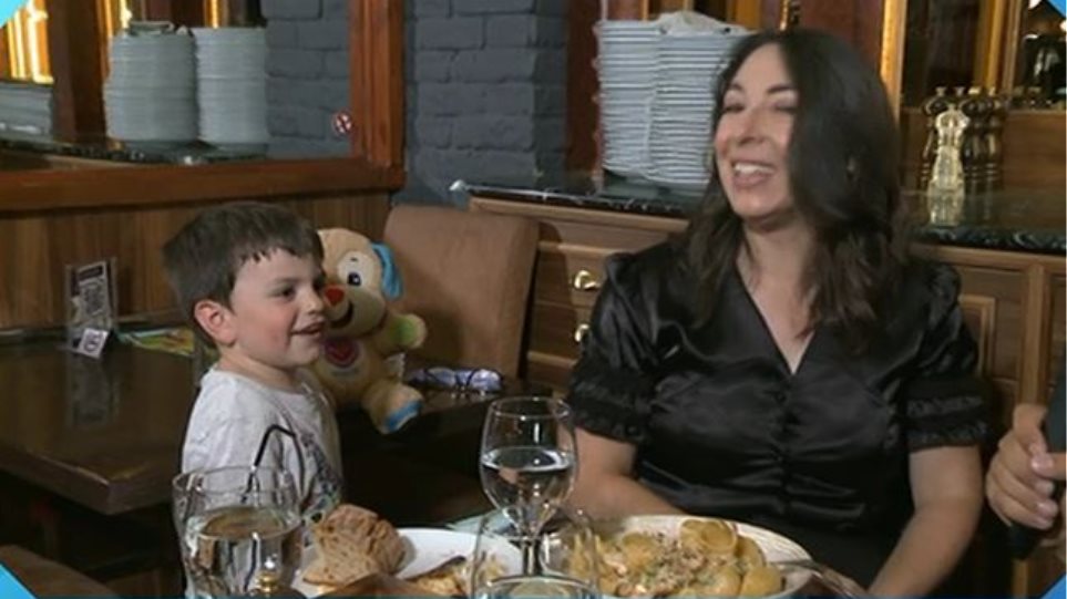 H ηθοποιός ντυμένη στα μαύρα έδωσε συνέντευξη με τον μικρό της γιο, Φοίβο Βουτσά, ο οποίος είπε και εκείνος δύο λόγια για τον… μπαμπά του. «Τον θυμάμαι τον μπαμπά. Θυμάμαι που πήγαμε στην παράσταση του μπαμπά» είπε ο μικρός.