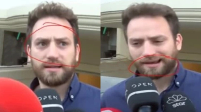 Καθ`όλη την διάρκεια (30 sec) που διαρκεί η συνέντευξη υπάρχει πλήρης απουσία εμφάνισης του grief muscle – του χαρακτηριστικού “ζαρώματος” του μετώπου όταν αισθανόμαστε θλίψη – το μέτωπό του παραμένει χωρίς καμία απολύτως αλλαγή (στο x0,25 playback speed είναι εμφανέστατο)
