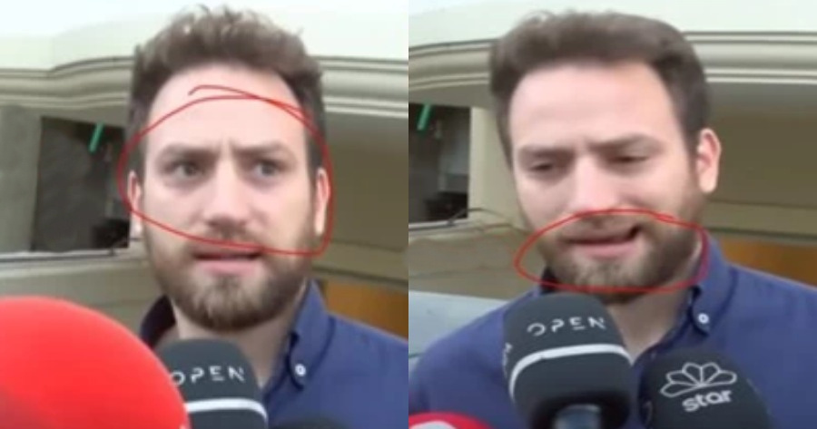 Καθ`όλη την διάρκεια (30 sec) που διαρκεί η συνέντευξη υπάρχει πλήρης απουσία εμφάνισης του grief muscle – του χαρακτηριστικού “ζαρώματος” του μετώπου όταν αισθανόμαστε θλίψη – το μέτωπό του παραμένει χωρίς καμία απολύτως αλλαγή (στο x0,25 playback speed είναι εμφανέστατο)