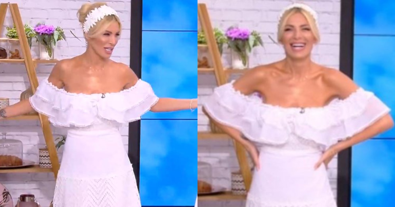 Με ένα ιδιαίτερο look, μας καλημέρισε το πρωί της Τρίτης η γνωστή παρουσιάστρια. Εισέβαλε στο πλατό της εκπομπής “Ευτυχείτε” ντυμένη στα λευκά. Μάλιστα, η παρουσιάστρια αναφώνησε με αρκετή διάθεση: «Σας το κρατούσα για την τελευταία εκπομπή! Να ζήσω! Ήρθα από το Δημαρχείο!».