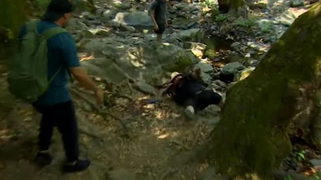 Σε πλάνο που δείχνει το βίντεο, ο παρουσιαστής και η ομάδα του κάνουν πεζοπορία μέσα σε ένα δάσος, με ανώμαλο έδαφος, όταν ξαφνικά μπερδεύτηκε σε πέτρες και κλαδιά που βρίσκονταν μπροστά του και σκόνταψε, έχασε την ισορροπία του, έπεσε και κύλησε προς τα κάτω.
