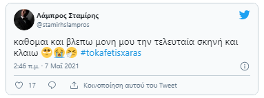 Τελικά αυτό που έμεινε είναι πως η αγάπη πάντα νικάει… Οι δυο τους θυσίασαν τον έρωτά τους που έμεινε αλώβητος στα χρόνια, για χάρη των παιδιών τους που παντρεύτηκαν. Η Χαρά όμως κρατούσε το καλύτερο για το φινάλε. Ανακοίνωσε στον Περίανδρο ότι είναι έγκυος και το παιδί τους θα είναι έξι μήνες μικρότερο από το εγγόνι τους! Το twitter όπως ήταν αναμενόμενο απόλαυσε το τελευταίο επεισόδιο και το αποχαιρέτησε με συγκίνηση και αγάπη!