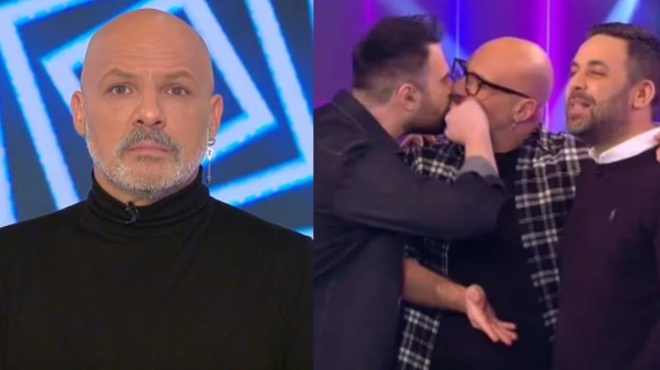 Τότε παρουσιαστής έθιξε το θέμα και ο Γιώργος Παπαδόπουλος του ευχήθηκε χρόνια πολλά λόγω της ημέρας με ένα φιλί στο στόμα… προστατευμένο από τα δάχτυλά του. Αντίστοιχη κίνηση έκανε ο τραγουδιστής και με τον Γιώργο Γιαννιά.