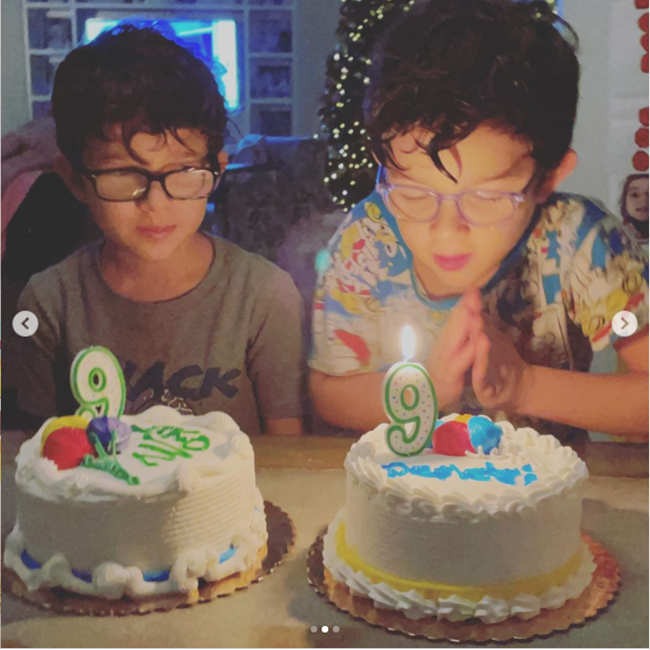 “Χρόνια πολλά στα δίδυμα αγόρια μου, Δημήτρη και Νίκο! Ειλικρινά δεν μπορώ να πιστέψω ότι γίνατε εννέα! Είστε οι έρωτες της ζωής μου (και φυσικά η αδερφή και ο μπαμπάς σας επίσης). Η ζωή σας να είναι πάντα γεμάτη χαρά, ευτυχία και αγάπη. Λατρεύω που είμαι μαμά σας. Η τελευταία φωτογραφία, ήταν η καλύτερη που είχα από εμάς #9yearsold”.
