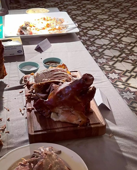 Συνεχίζουμε στο δείπνο που (δεν) φάγαμε στο ιστορικό ξενοδοχείο του Ποσειδωνίου, όπου αντίκρισα για πρώτη φορά εδώ και χρόνια τα κομμένα κεφάλια μικρών γουρουνιών, καθ´ οδόν για να πάρω μια σαλάτα από τον μπουφέ. Δεν ξέρω αν είναι αρνητικό αυτό, μιας και λειτουργεί σαν υπενθύμιση του τι (η μάλλον ποιον) βάζουμε στο πιάτο μας, αλλά για εμένα προσωπικά ήταν πολύ δύσκολο θέαμα.