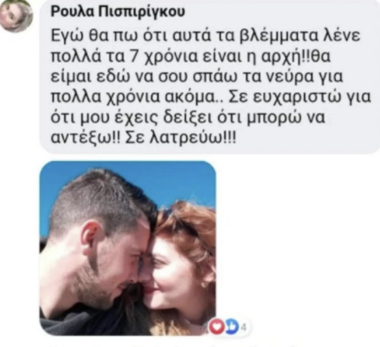 Τις τελευταίες ώρες τον γύρο του διαδικτύου κάνουν τα μηνύματα που αντάλλαζαν οι γονείς των παιδιών στα social media και μάλιστα λίγους μήνες μετά της Μαλένας. Ο πατέρας των παιδιών, Μάνος Δασκαλάκης εκφράζει την απεριόριστη αγάπη του για τη Ρούλα Πισπιρίγκου και εκείνη με την σειρά της ανταποδίδει.