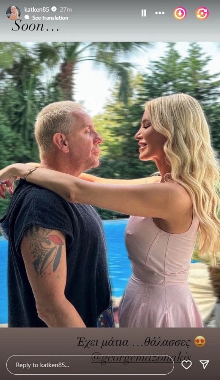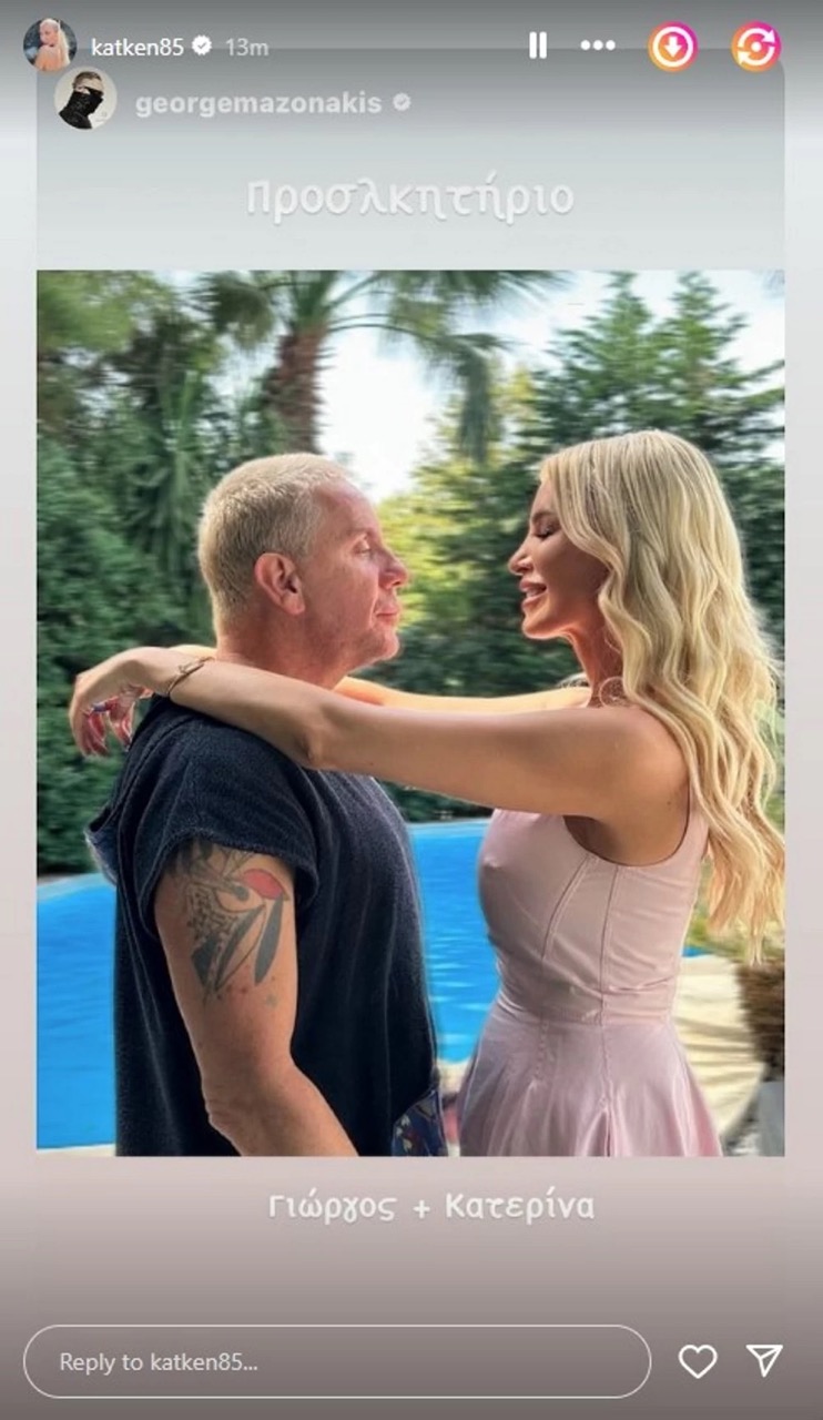 Η Καινούργιου συνόδευσε την εικόνα της με τον τραγουδιστή με τη φράση «Έχει μάτια… θάλασσες», ενώ ο Μαζωνάκης απάντησε με ένα πνευματώδες σχόλιο: «Το προσκλητήριο. Γιώργος και Κατερίνα», δημιουργώντας αίσθηση μυστηρίου και αναμονής για την επερχόμενη συνέντευξη.