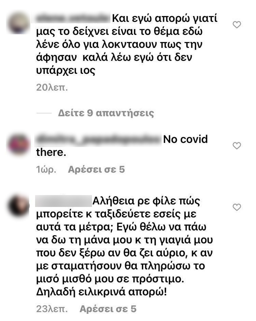Νωρίτερα, η Κωνσταντίνα Σπυροπούλου είχε δημοσιεύσει στο προφίλ της μερικές φωτογραφίες από το αεροδρόμιο “Ελευθέριος Βενιζέλος”, χωρίς όμως να φοράει μάσκα προστασίας για τον κορονοϊό.