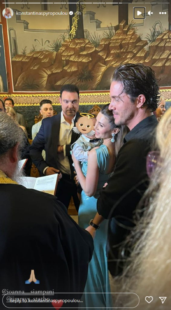 Το μυστήριο έγινε στον Ιερό Ναό Κωνσταντίνου και Ελένης στη Γλυφάδα με νονό τον γνωστό τραγουδιστή Νίκο Οικονομόπουλο.