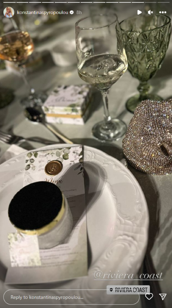 Ανάμεσα στους καλεσμένους ήταν η Κωνσταντίνα Σπυροπούλου με τον σύζυγό της, Βασίλη Σταθοκωστόπουλο.