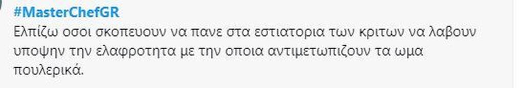 Το Twitter για το ωμό ορτύκι της Μαρίνας στο MasterChef
