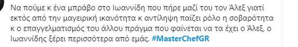 Αξίζει να σημειωθεί ότι, ο Αλέξανδρος που αξιοποίησε στο έπακρο τη δεύτερη ευκαιρία, είχε πρόταση από τον Πάνο Ιωαννίδη να δουλέψουν μαζί, ενώ την ίδια στιγμή, το Twitter έκανε λόγο για μεγάλη αδικία κατά του Αλέξανδρου, καθώς το ορτύκι της Μαρίνας ήταν απλά ωμό.