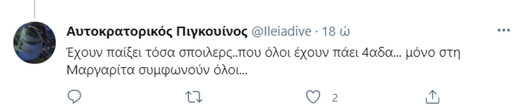 Οι περισσότεροι των τηλεθεατών πάντως υποστηρίζουν Μαργαρίτα.