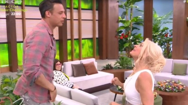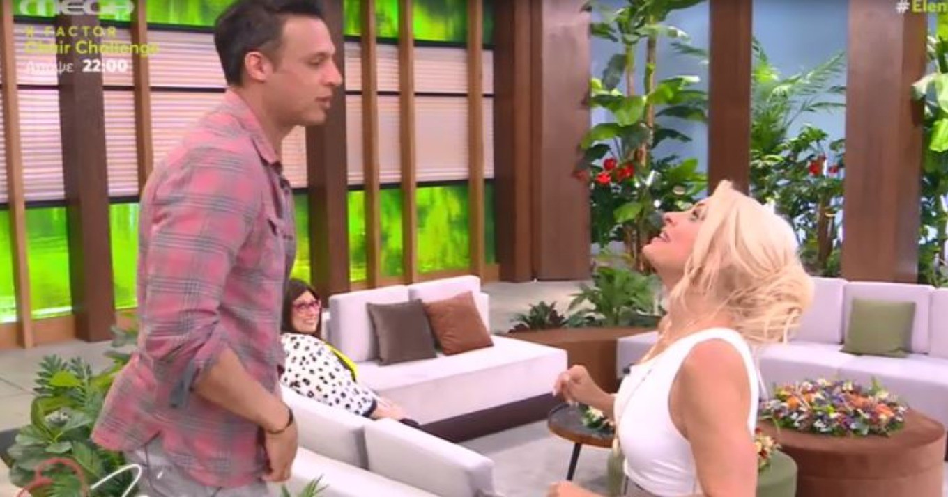 Αμηχανία επικράτησε στον αέρα της εκπομπής, όταν η Ελένη Μενεγάκη θέλησε να πει ψιθυριστά στον Σάββα Πούμπουρα για το φερμουάρ του.