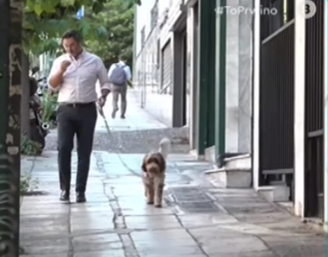 Το πρωί της Τετάρτης 20/9, είδαμε τον αδελφό του υποψήφιου προέδρου του ΣΥΡΙΖΑ Στέλιο Κασσελάκη σε βόλτα με τον σκύλο του.