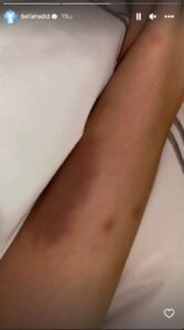 Μυστήριο επικρατεί γύρω από το πώς απέκτησε η Μπέλα Χαντίντ τα μελανιασμένα πόδια και τους επιδέσμους στην πλάτη που η ίδια πόσταρε.