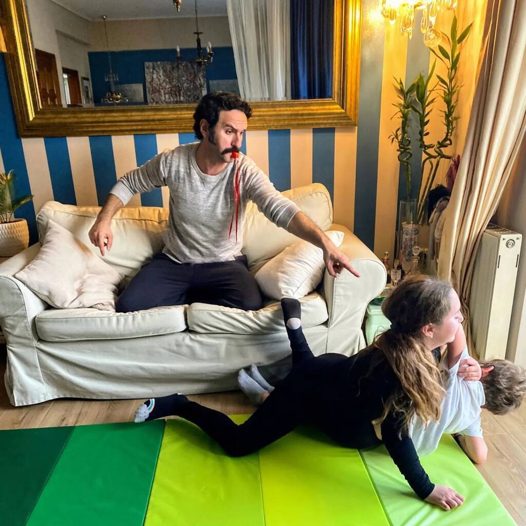 «Όταν γεννήθηκε η κόρη μου και μέχρι να έρθει και η καραντίνα όπου μείναμε σπίτι, εγώ ήμουν μπαμπάς του Σαββατοκύριακου. Δούλευα πρωί γύρισμα, βράδυ παράσταση. Τα παιδιά μου τα ήξερα εξ όψεως. Πάρα πολλές ώρες δουλειάς με ένα μεγάλο τίμημα, οπότε τώρα προσπαθώ όσο μπορώ να αναπληρώσω τον χαμένο χρόνο. Από πέρσι το Μάρτη δεν έχω ξαναδουλέψει στο Θέατρο, λόγω καραντίνας, κι αυτό δεν έχει ξανασυμβεί τα τελευταία 20 χρόνια που εργάζομαι. Αυτόν τον ελεύθερο χρόνο τον διοχετεύω πλέον στα παιδιά μου.»