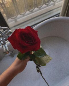 Ένα αρκετά κινηματογραφικό σκηνικό όπως κάνει μπάνιο κρατώντας ένα τριαντάφυλλο μοιράστηκε στα κοινωνικά δίκτυα η Κλέλια Ανδριολάτου.