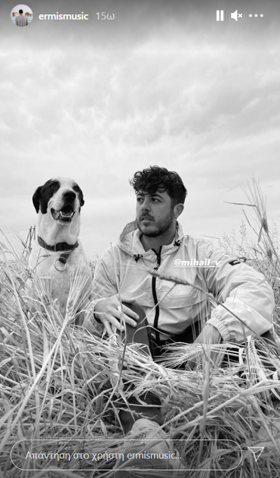 Ο Ερμής Γεραγίδης, στενός συνεργάτης του Νικόλα Βαρθακούρη, ανέβασε στα stories του Instagram την ασπρόμαυρη φωτογραφία του Μιχαήλ Άγγελου, να κάθεται μέσα σε στάχυα παρέα με έναν σκύλο.