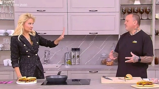 «Είδα το χέρι, τελειώσαμε!» της είπε ο μάγειρας και η παρουσιάστρια σχολίασε πως: «Μην την κάνουμε αυτή την κουβέντα. Ο καθένας έχει τα θέματά του».