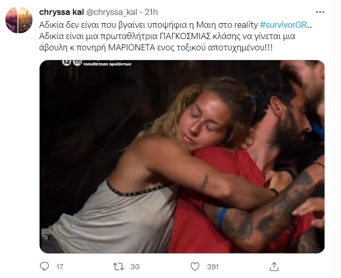 Σαν γυναίκα μου βγάζεις σεβασμό και μια καθαρή ψυχή, έχω δει το ποσό στοργικός είναι ο Άρης μαζί σου και νομίζω όχι άδικα .. Στηρίζω Μαίη στην αποψινή ψηφοφορία #μαιη #survivorGR pic.twitter.com/Xn9tKLsRto