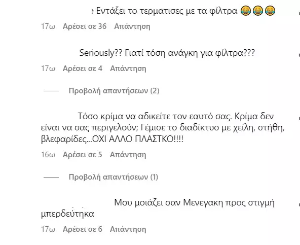 Δείτε κάποια από τα αρνητικά σχόλια: