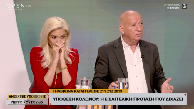 Η εκπομπή ασχολήθηκε με δύο υποθέσεις που απασχόλησαν πολύ την κοινή γνώμη: αυτές της Πάτρας και της 12χρονης από τον Κολωνό. Το «παρών» στο πλατό έδωσε και ο Θανάσης Κατερινόπουλος -ο οποίος μαζί με την ψυχολόγο Ναταλί Βέλτση αναμένεται να αποτελέσουν μόνιμα μέλη της εκπομπής-, με τον ίδιο να αποδεικνύεται… ασυγκράτητος και να βάζει το μαχαίρι στο κόκκαλο με ατάκες που συζητήθηκαν πολύ.