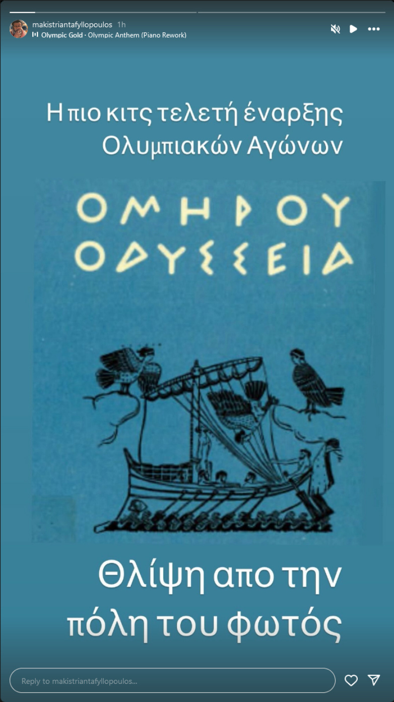 Ο Μάκης Τριανταφυλλόπουλος εκφράζει στον προσωπικό του λογαριασμό στο Instagram την γνώμη του σχετικά με την Τελετή Έναρξης των Ολυμπιακών Αγώνων 2024, στο Παρίσι.