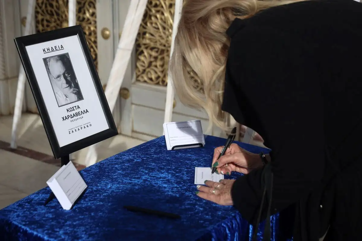 Λίγα λεπτά αργότερα, ο Κωνσταντίνος Χαρδαβέλλας μίλησε στις τηλεοπτικές κάμερες και υπογράμμισε ότι «ο πατέρας μου δεν θα ήθελε να είναι σήμερα ημέρα στενοχώριας».