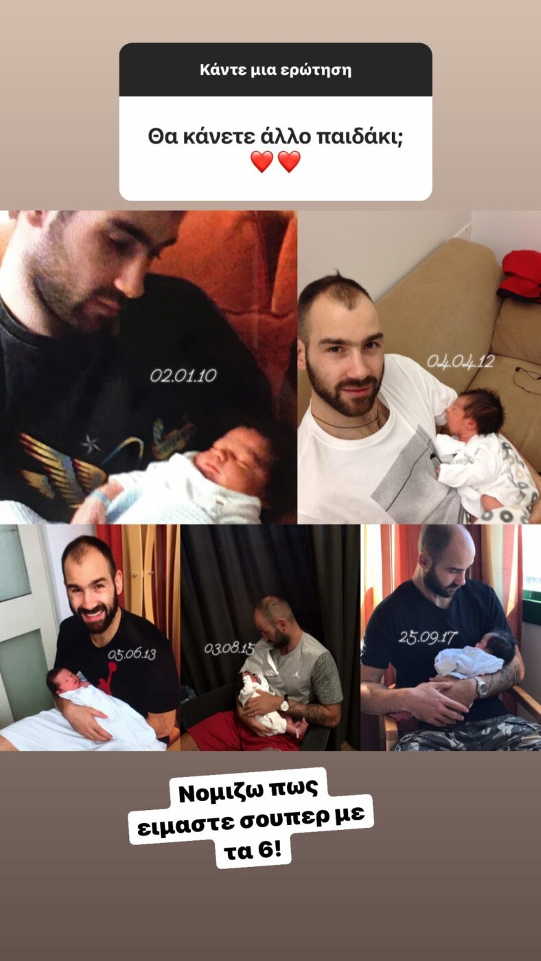 «Νιώθω σούπερ με τα έξι» ήταν μια δεύτερη απάντηση της Ολυμπίας στην ίδια ερώτηση, δημοσιεύοντας φωτογραφίες με τον Βασίλη Σπανούλη έχοντας στην αγκαλιά του τα νεογέννητα παιδιά τους.