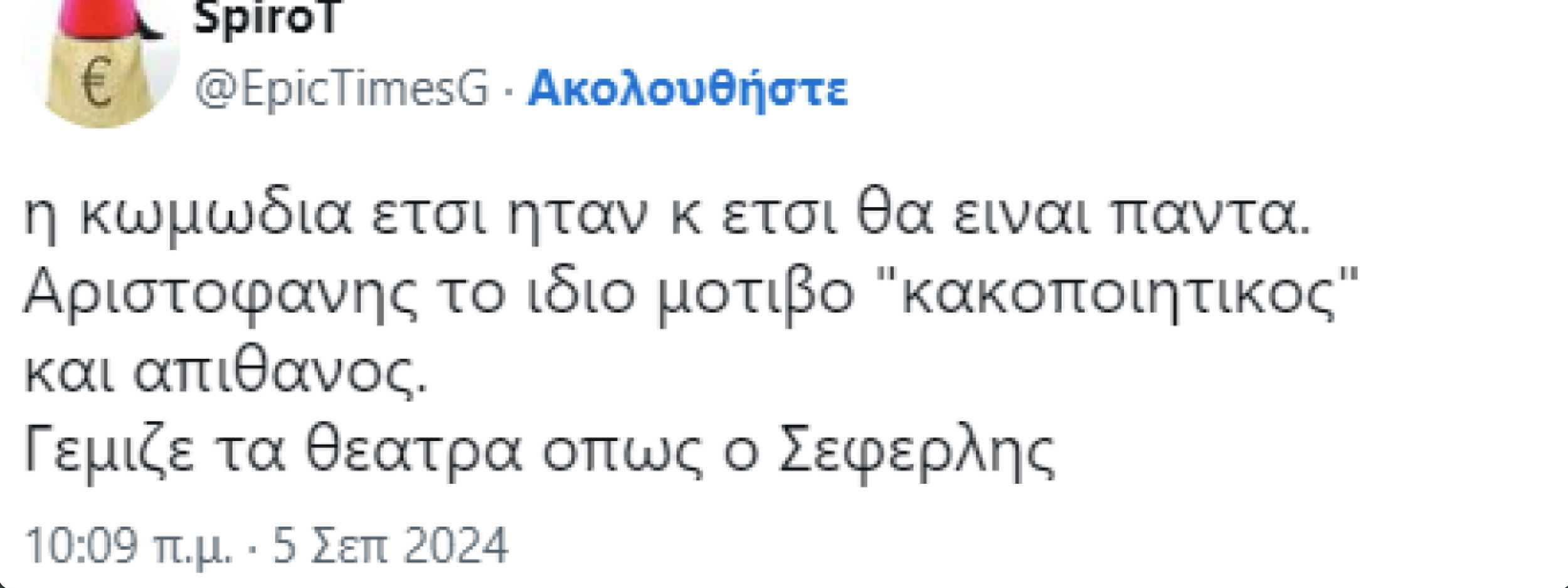 Όταν ο Σεφερλης γεμίζει θέατρο κοροιδευοντας μην σου κάνουν εντύπωση περιστατικά βιας
