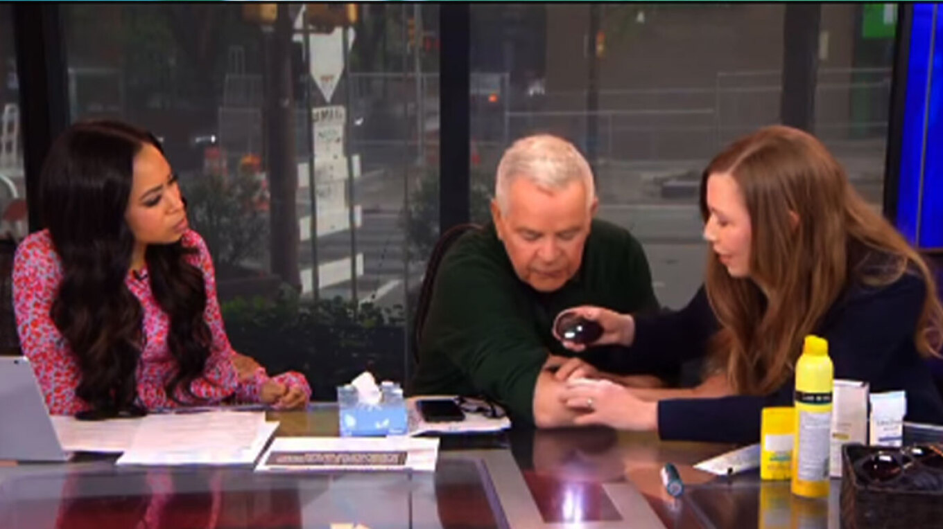 Καθώς η γιατρός εξέταζε το χέρι του παρουσιαστή, παρατήρησε μία ανησυχητική κηλίδα, που παρουσίαζε όλα τα χαρακτηριστικά του πιο κοινού τύπου καρκίνου του δέρματος – του βασικοκυτταρικού καρκινώματος.