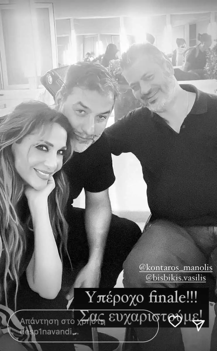 Εκτός από την κόρη της, στο πλευρό της Δέσποινας Βανδή και σε αυτή την εμφάνισή της ήταν ο σύντροφός της, Βασίλης Μπισμπίκης, με την τραγουδίστρια να ανεβάζει και μια κοινή τους φωτογραφία με τον φίλο τους και… «κουμπάρο», Μανώλη Κονταρό.