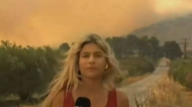 Η Ιωάννα Μποροπούλου βρισκόταν σε ένα σημείο της Νέας Αγχιάλου και μετέδιδε όλα όσα συνέβαιναν με τη φωτιά, η οποία ήταν εκτός ελέγχου μέχρι σήμερα, το απόγευμα, όταν ξαφνικά ακούστηκε η έκρηξη από την αποθήκη πυρομαχικών και καταγράφηκε η στιγμή που το ωστικό κύμα πέρασε από το σημείο.