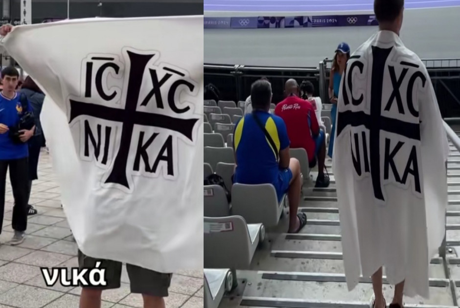 Ωστόσο, αντί να κρατήσει τη σημαία της Κύπρου, είχε μαζί του μια σημαία που έγραφε «Ιησούς Χριστός Νικά».