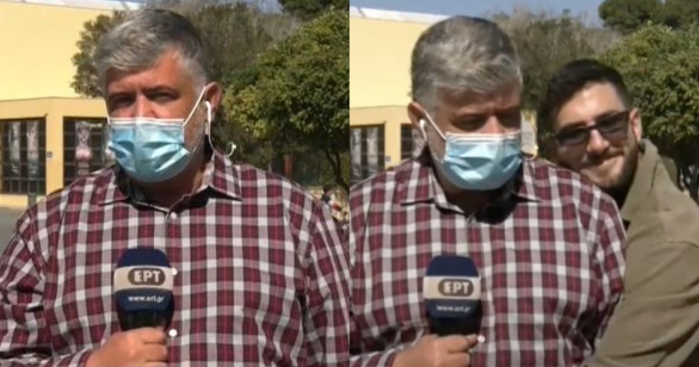 Ρεπόρτερ της ΕΡΤ ενώ μιλούσε δέχτηκε μια αγκαλιά από περαστικό