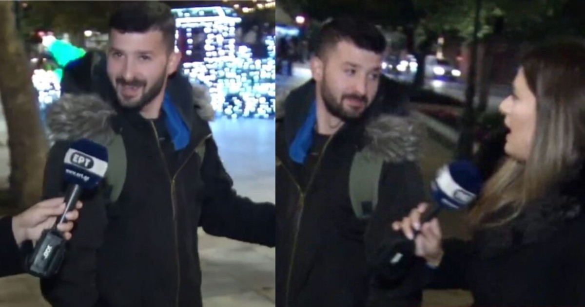 Συγκεκριμένα νωρίς το πρωί ρεπόρτερ της πρωινής ενημερωτικής εκπομπής «Συνδέσεις» βρέθηκε στο στολισμένο Σύνταγμα. Ωστόσο την στιγμή που πλησίασε έναν πολίτη, ο ίδιος δήλωσε μιλώντας στην κάμερα: