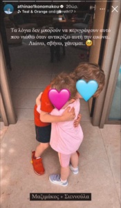 Το πρώτο πράγμα που έκανε η δημοφιλής ηθοποιός όταν επέστρεψε στην Αθήνα ήταν να αφιερώσει χρόνο στα δύο της παιδιά. Πριν από λίγες ώρες, η Αθηνά Οικονομάκου δημοσίευσε ένα πολύ γλυκό βίντεο σε Instagram-story όπου βλέπουμε τον Μάξιμο και τη Σιέννα να αγκαλιάζονται τρυφερά.