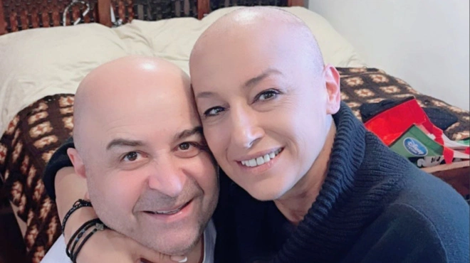 Στην φωτογραφία που δημοσίευσε ο Μάρκος Σεφερλής, ποζάρει δίπλα της ενώ φαίνεται πως έχει ξυρίσει εντελώς το κεφάλι του για να της συμπαρασταθεί.