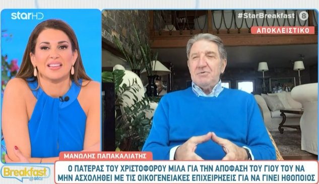 Ο επιχειρηματίας Μανώλης Παπακαλιάτης μίλησε στην εκπομπή Breakfast@Star για το πόσο περήφανος είναι για την καριέρα του γιου του.