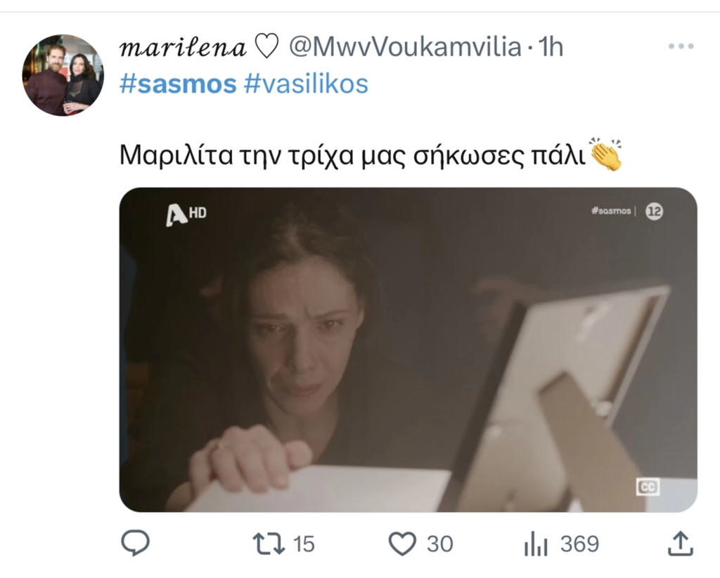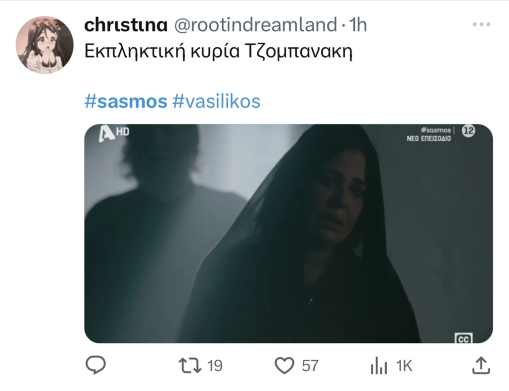 Σκηνές που θύμισαν αρχαία τραγωδία περιείχε το επεισόδιο κι εκατοντάδες εγκωμιαστικά σχόλια κυριάρχησαν στο Twitter (X) για τις ερμηνείες των ηθοποιών, ιδιαίτερα γι ΄αυτές της Μαρίας Τζομπανάκη και Μαριλίτας Λαμπροπούλου.