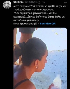 Παρακολουθώντας όλα αυτά το κοινό άρχισε να αναρωτιέται πώς είναι δυνατόν η παίκτρια να αισθάνεται τόσο άσχημα ειδικά μετά από ένα τόσο σπουδαίο έπαθλο, όπως ήταν το ταξίδι στη Νέα Υόρκη. Έτσι, οι περισσότεροι, δεδομένης και της φετινής κατάστασης στο Survivor με πολλούς παίκτες να έχουν επικοινωνία με τον «έξω» κόσμο, άρχισαν να υποπτεύονται πως η παίκτρια των Κόκκινων ίσως κατά τη διάρκεια του ταξιδιού της είχε μάθει κάποιες πληροφορίες για το ότι η φετινή της συμμετοχή στο ριάλιτι επιβίωσης δεν έχει λάβει και τα καλύτερα σχόλια από τους τηλεθεατές.