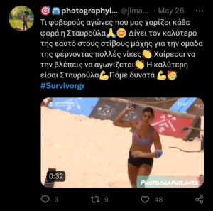 Το κοινό επικρότησε για ακόμα μια φορά την προσπάθεια της Σταυρούλας και τη γενικότερη εμφάνισή της στο Survivor, η οποία χωρίς να διαμαρτυρηθεί τα κατάφερε.