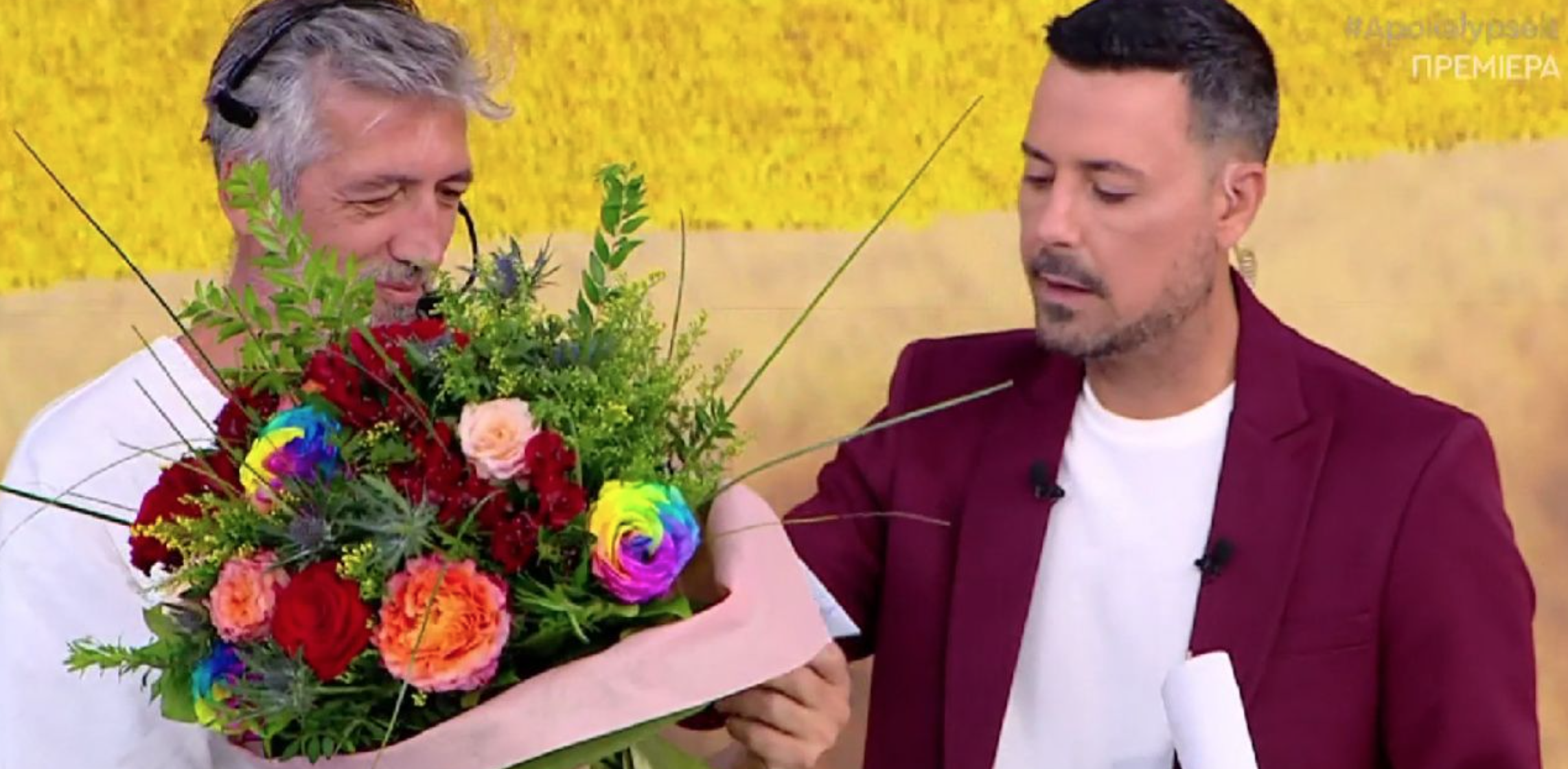Ιδιαίτερα συγκινημένος ήταν ο Πέτρος Κουσουλός στην εκπομπή τη στιγμή που έλαβε μια τεράστια ανθοδέσμη, δώρο από τα παιδιά του.