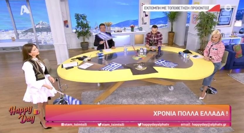 «Καλημέρα, χρόνια πολλά! Χρόνια πολλά στην Ελλάδα μας που παραμένει ελεύθερη και ανεξάρτητη, σε όλους τους Έλληνες που έχουν ξυπνήσει από το πρωί και θέλουν να γιορτάσουν αυτή τη μέρα. Σήμερα είδα περισσότερες σημαίες από κάθε άλλη φορά και χάρηκα πάρα πολύ», υπογράμμισε η παρουσιάστρια στην έναρξη της εκπομπής της.