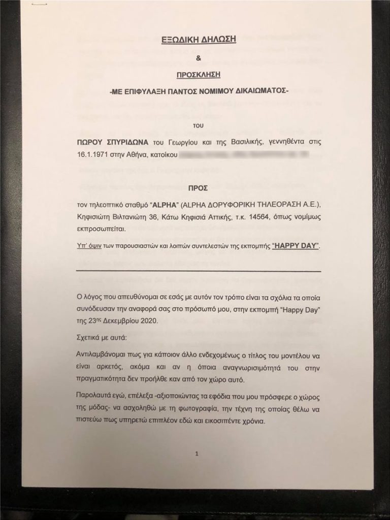 Σ. Πώρος: Το εξώδικο του Σπύρου Πώρου εναντίον του «Alpha» και του «Happy Day»